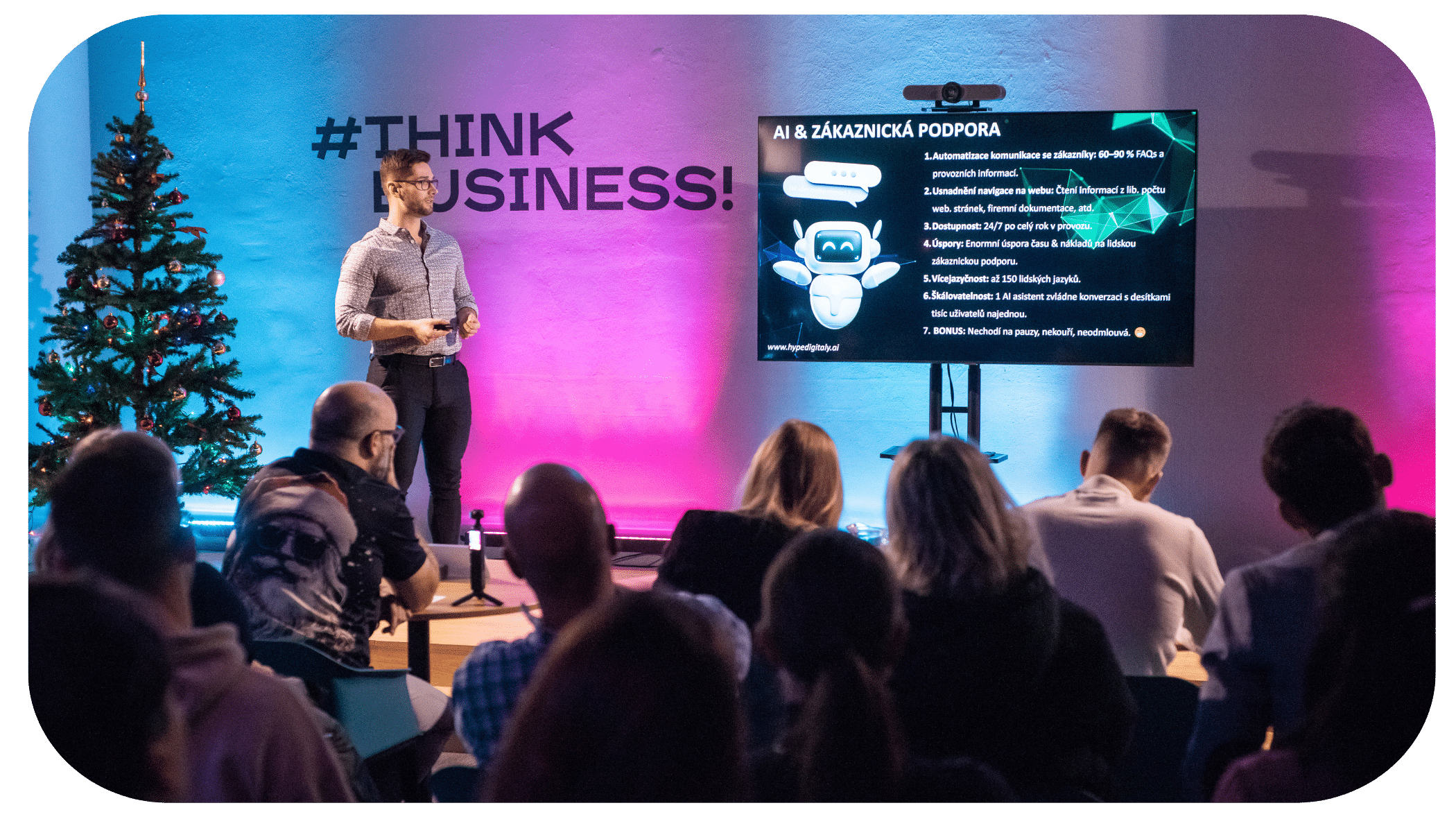 Finalisté inkubátoru. Každý má 5 minut. Žádné řeči okolo – čistý pitch, ostré otázky a přímá zpětná vazba.